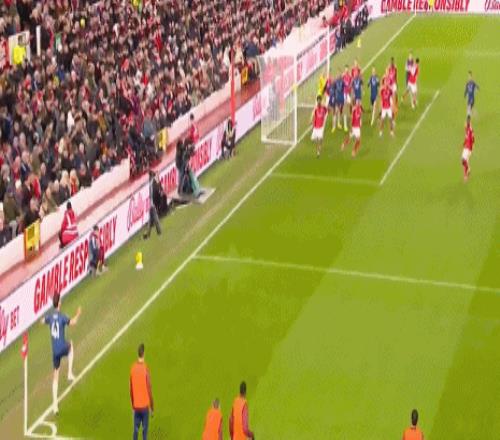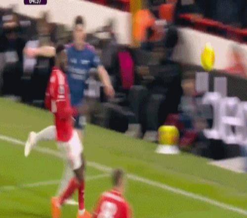 第37分钟,奥多伊右路拿球高速突破,廷贝尔战术犯规吃到黄牌。诺丁汉森林众将索要点球,不过VAR示意犯规在禁区之外,阿森纳逃过一劫。